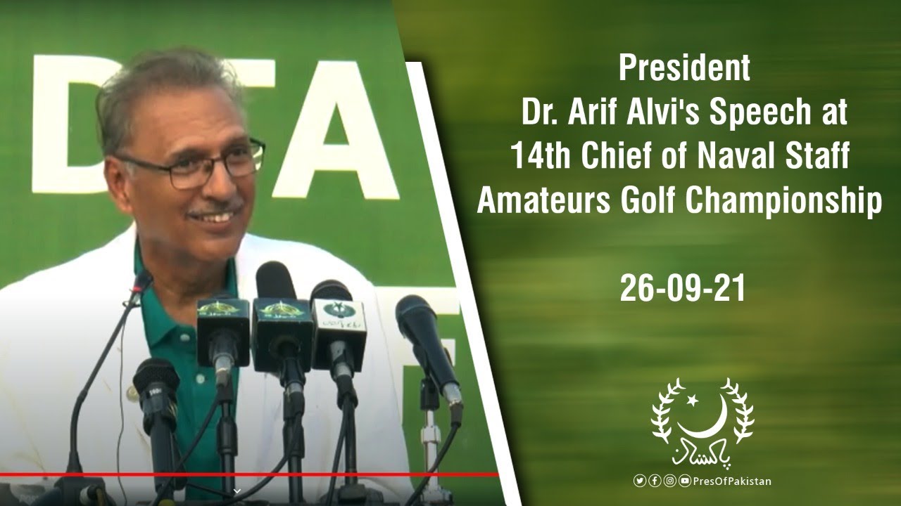 President Dr. Arif Alvi addressing the closing ceremony of 14th Chief of Naval Staff Amateurs Golf Championship 2021.