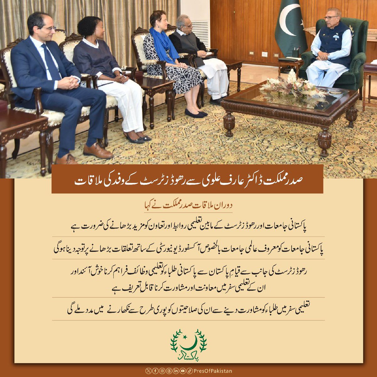 صدر مملکت ڈاکٹر عارف علوی سے رھوڈز ٹرسٹ کے وفد کی ملاقات۔