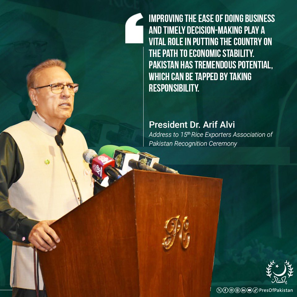 President Dr. Arif Alvi addressed the 15th Rice Exporters Association of Pakistan Recognition Ceremony.