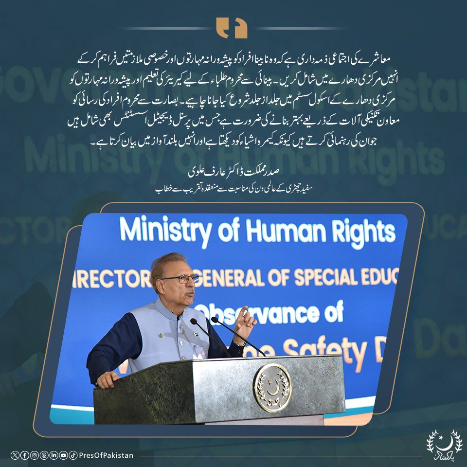 صدر مملکت ڈاکٹر عارف علوی کا سفید چھڑی کے عالمی دن کی مناسبت سے منعقدہ تقریب سے خطاب۔