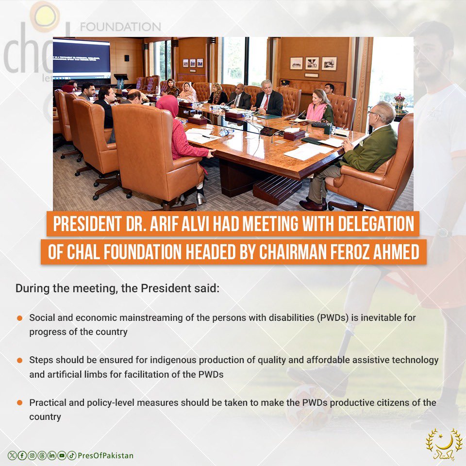 President Dr. Arif Alvi had a meeting with a delegation of Chal Foundation headed by Chairman Feroz Ahmed.