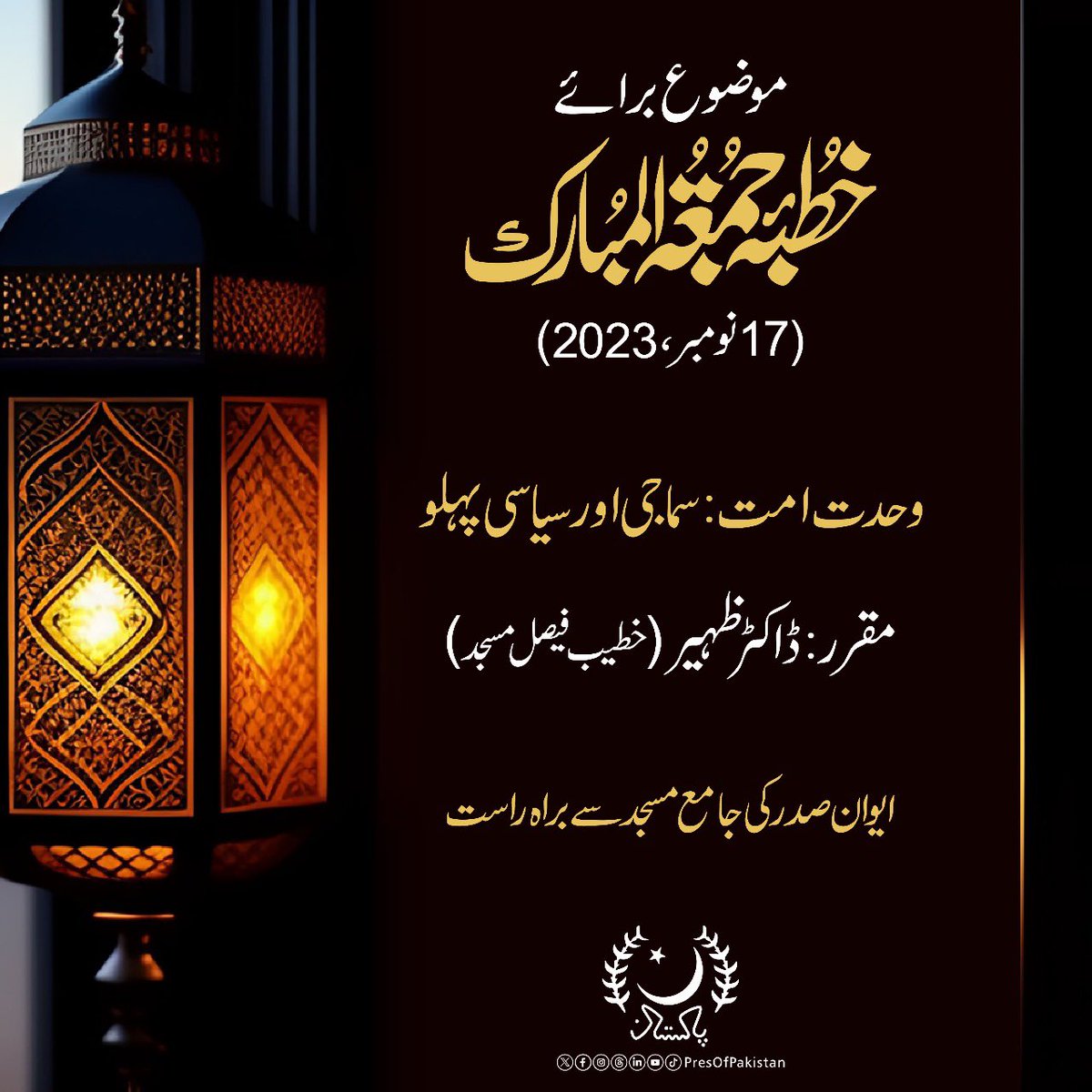 ڈاکٹر ظہیر “وحدت امت:سماجی اور سیاسی پہلو” کے موضوع پر ایوان صدر کی جامع مسجد میں خطبہ دیں گے