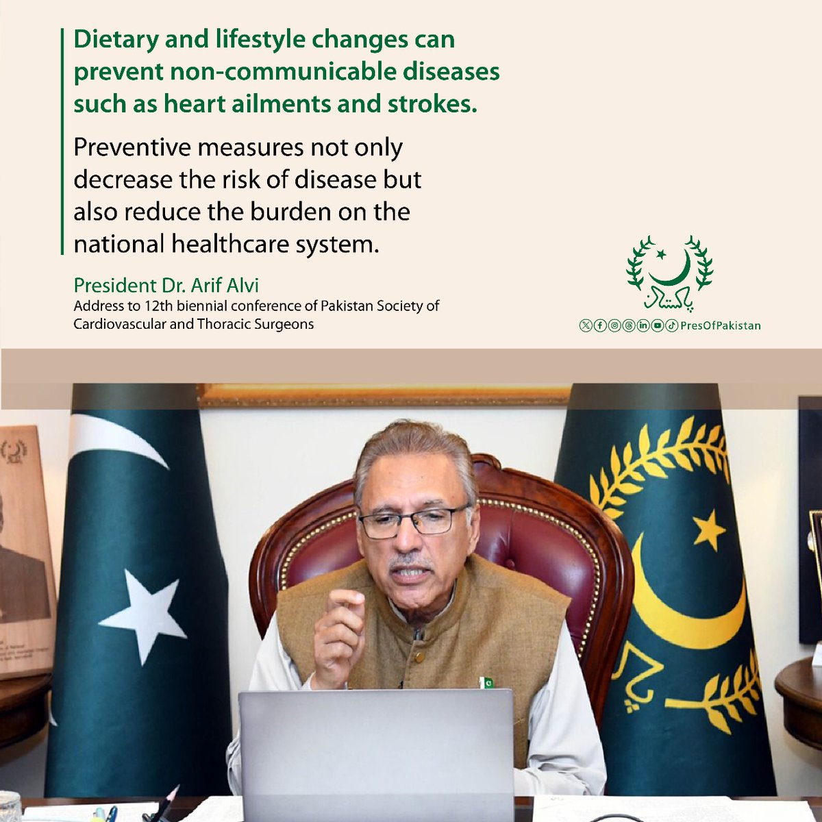 President Dr. Arif Alvi addressed the participants of the 12th biennial conference of Pakistan Society of Cardiovascular and Thoracic Surgeons.