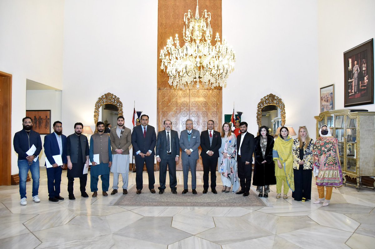 President Dr. Arif Alvi in a group photo with a delegation of educationists from Antalya Schools Franchise System, who called on him, at Aiwan-e-Sadr.